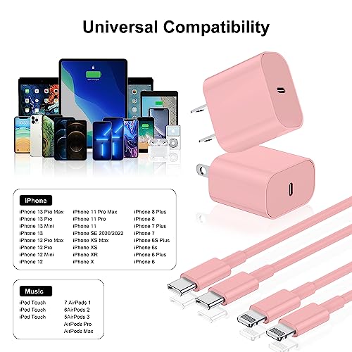 Details: iPhone 14 13 12 Charger Fast Charging(Pink), [MFi Certified] 2Pack Wall Charger Plug with 6ft USB C to Lightning Cable, Fast Charging Power Adapter Cube Brick for iPhone14/13/12/11/XS/XR/8Plus,iPad